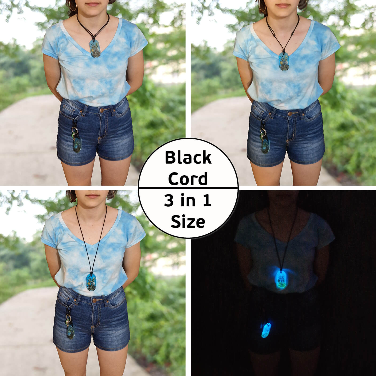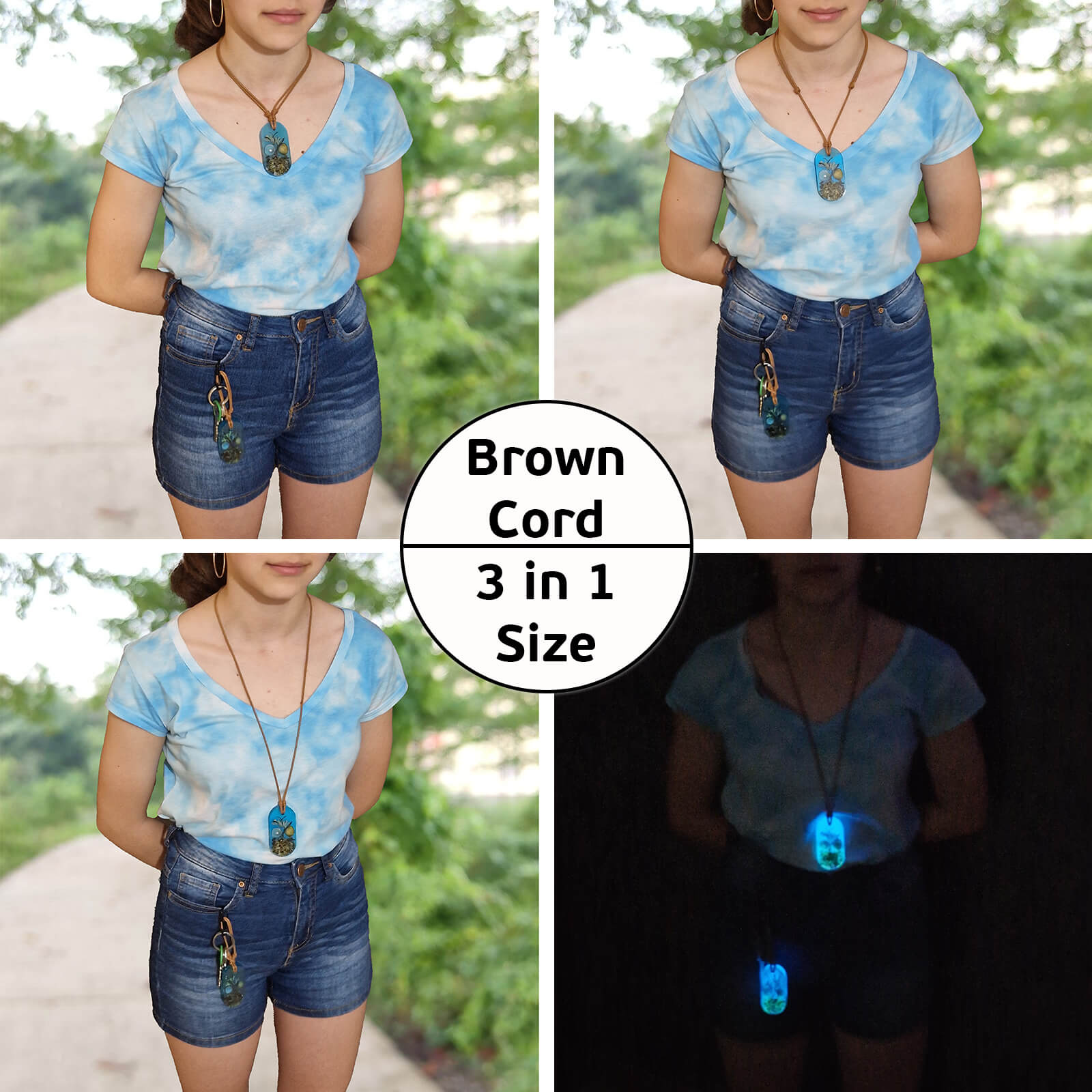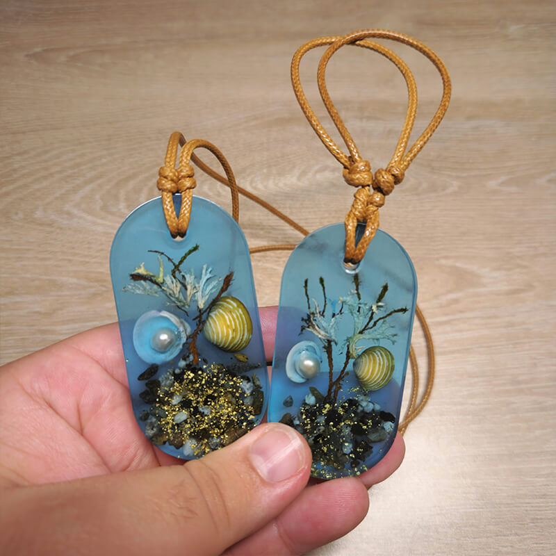 Modèle Ellipse Fait Main Collier Et Porte-Clés Époxy Lueur Unique Or Pur 24K Perle Véritable Collection « Océan Doré »