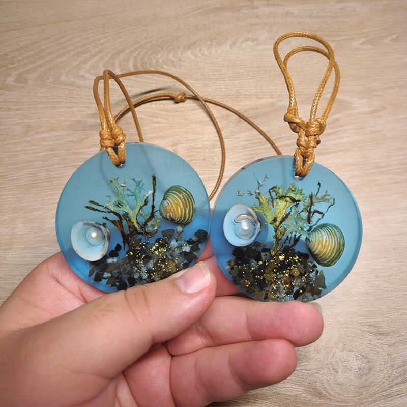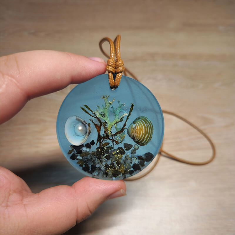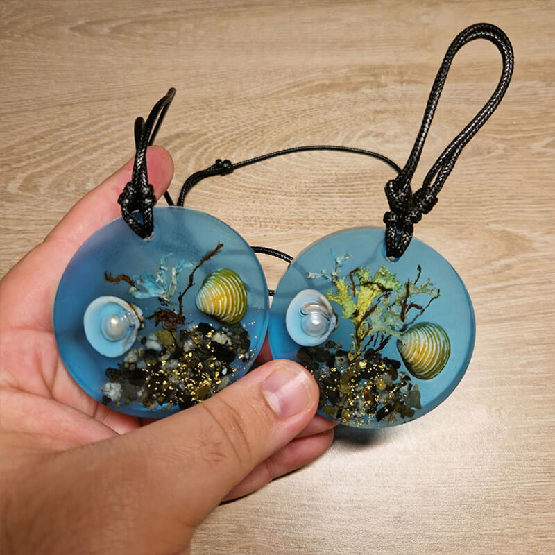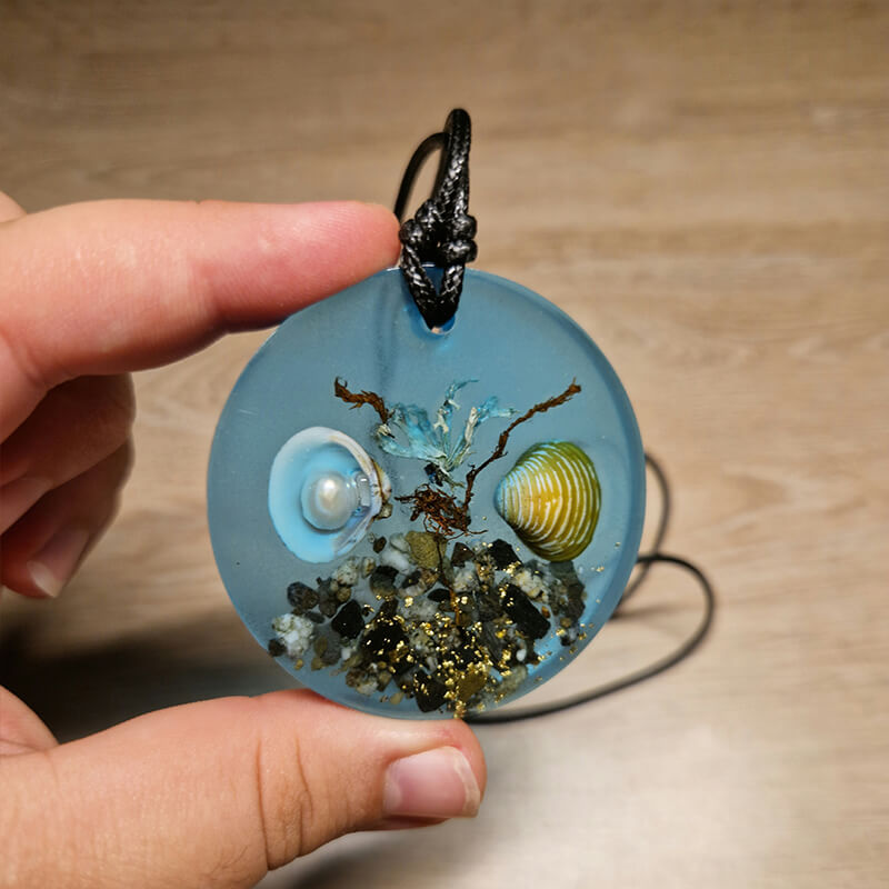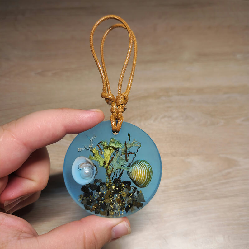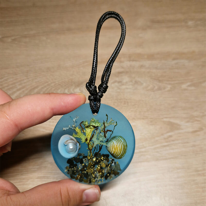 Handmade Necklace and Keychain Circle Model Unique Glow 24K Pure Gold Real Pearl Epoxy “Golden Ocean” Collection